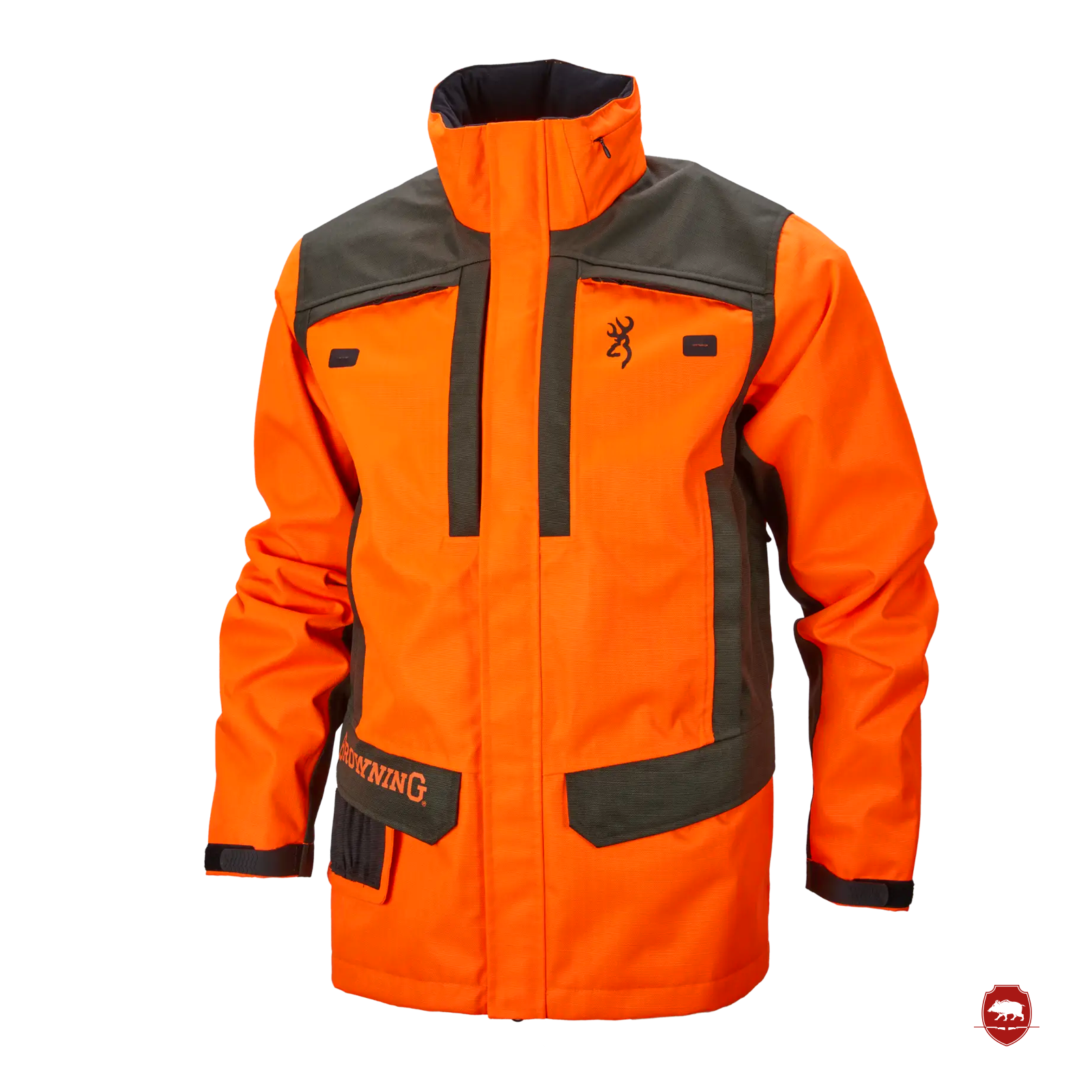 Capucha plegable a la altura del cuello. 2 Radio pockets with opening for radio cable. Estuche de municiones. 2 cremalleras de ventilación. Bolsillo morral. Tejido: 100% poliéster + membrana de PU / forro 100% poliéster forro impermeable: 100% poliamida.