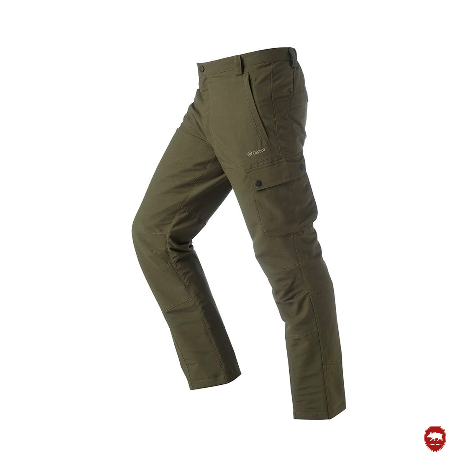 Pantalón antiespinos con tejido silencioso resistente y repelente al agua. Patrón Slim. Conformado para optimizar la libertad de movimientos.